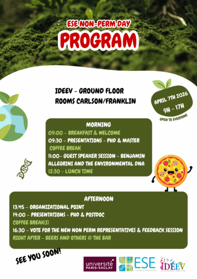 Mardi 7 avril aura lieu à l’IDEEV de 9h à 17h (en salles Franklin / Carlson) la journée annuelle des membres non-permanents de l’ESE.